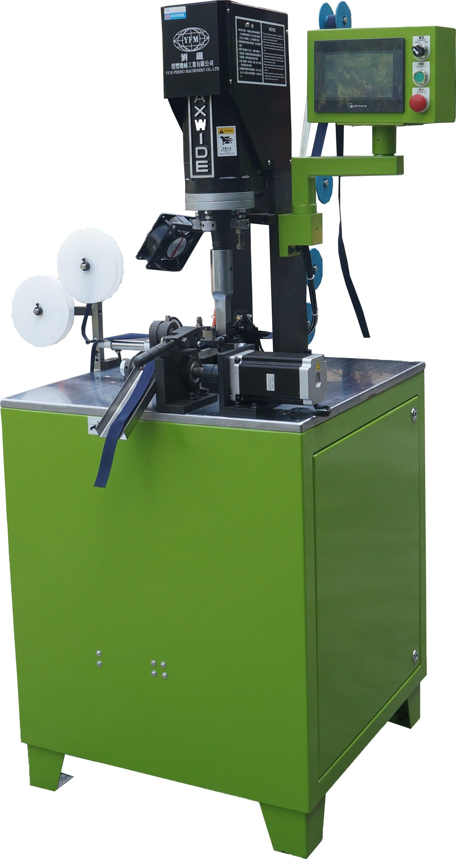 The function of this machine is automatically to feed film, cut and weld it on the open end side of nylon, metal or plastic long chain zipper.