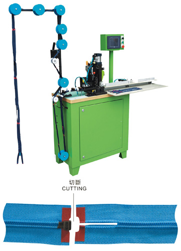 This machine is to cut the nylon, metal or plastic (You can choose one) open end zipper automatically.